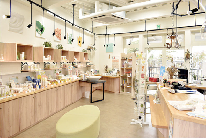 Dans l'atmosphère naturelle et chaleureuse de la boutique, nous vendons non seulement nos propres cosmétiques, mais aussi des huiles aromatiques, des tisanes, des pendentifs en bois pour huiles essentielles et divers autres articles.