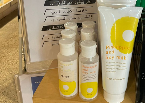 Chez « Full Stop » à Dubaï, nous proposons la gamme Lait de Soja Ananas pour une épilation douce.